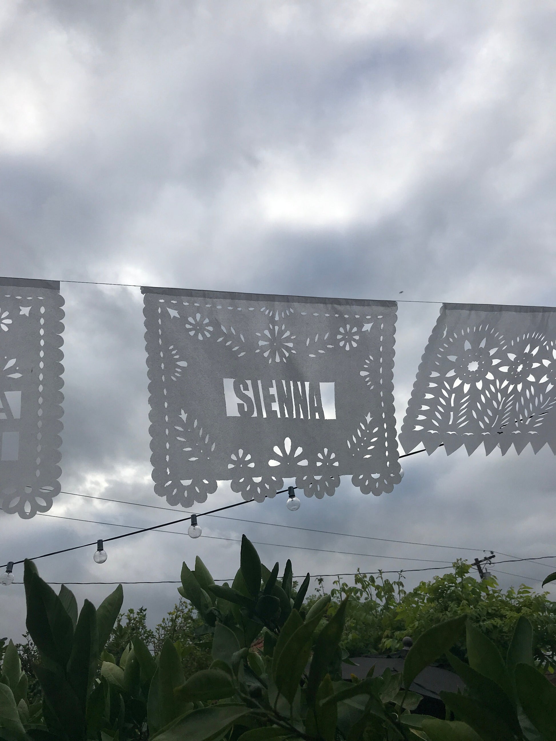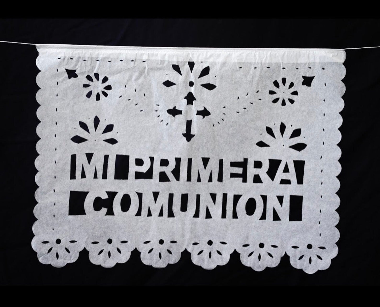 A beautiful custom garland for your child's First Communion celebration. This listing includes one Name flag design alternating with "Mi Primera Comunión" OR "First Communion" with on 10 flags per strand.